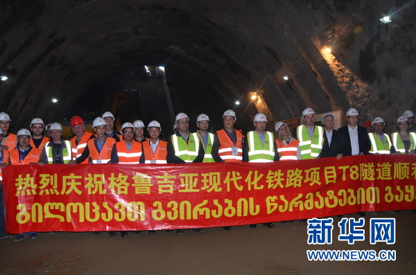 新华网第比利斯4月19日电(记者李铭 报道员汤少平)经过10个月的紧张施工,由中铁二十三局集团承建的格鲁吉亚现代化铁路项目“咽喉”工程——T8隧道于18日晚实现顺利贯通。格鲁吉亚副总理兼经济部长库姆西什维利出席隧道竣工剪彩仪式。