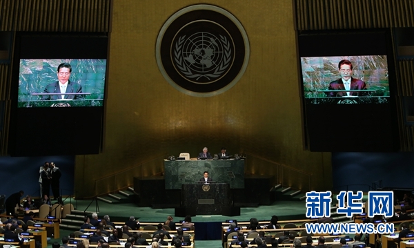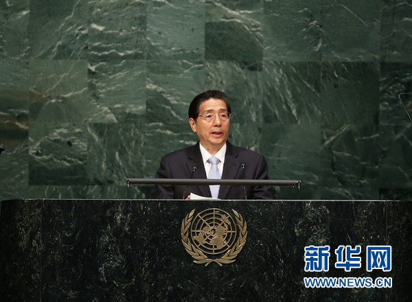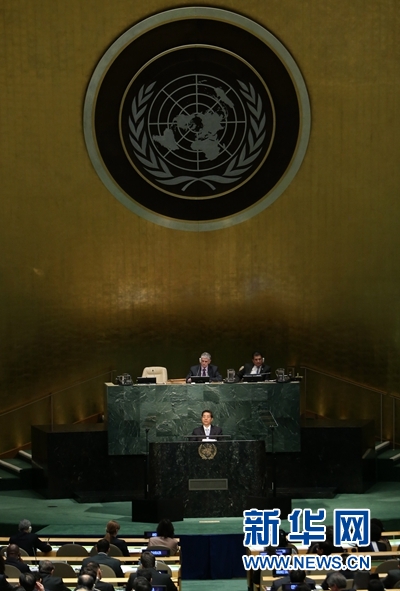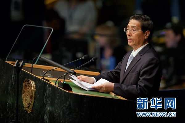 4月19日,在美国纽约联合国总部,国务委员、国家禁毒委员会主任、公安部部长郭声琨在2016年世界毒品问题特别联大上发言。新华社记者秦朗摄