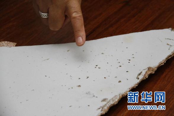 切斯特表示,残片上的关键数字和字母喷码与失事马航客机上的喷码完全一致,说明两块残片确实来自马航370航班客机。