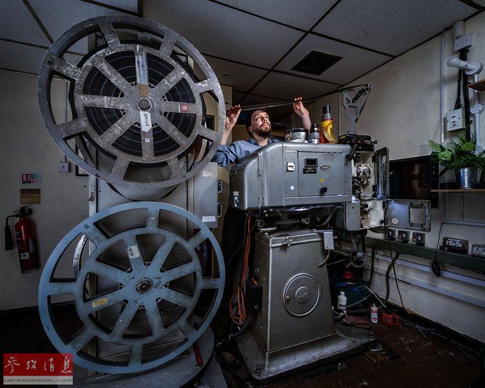 据英国《卫报》4月19日报道,电影行业一直都处于不断的技术变革中,电影放映员的工作内容也在不断发生改变。而随着电影越来越数字化,放映员职业甚至面临消失。摄影师Richard Nicholson走访各地,拍摄了即将消失的职业——电影放映员的生活。来自英国伯明翰最古老电影院的放映员Sam Bishop说:“对于放映员来说最大的挑战是他们要在全黑的环境中工作,我们需要设置灯光来模拟放映厅的氛围。”