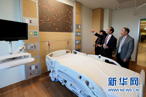 公众参观东华医院新医务大楼病房。