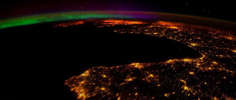 哈雷(Harmonic)公司为NASA TV UHD独家制作了这段视频。他们用延时摄影拍下了从空间站看到的北极光和南极光的样子。当地球磁场中的带电粒子与上层大气中的中性原子相碰撞时便产生了极光。因地球磁场将带电粒子集中于两极,因此出现了南极光和北极光。