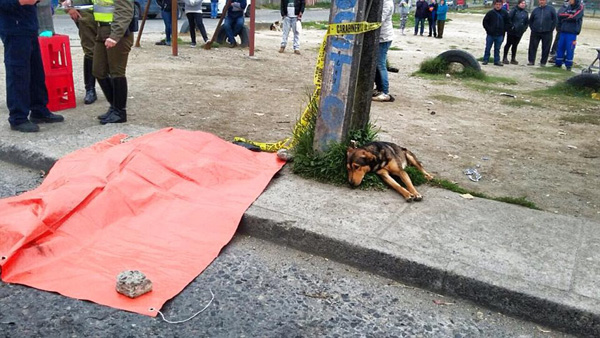 事故发生在智利中部城市康塞普西翁省,23岁的男子莱昂纳多·巴尔德(Leonardo Valdes)被车撞倒,不幸身亡。当救援人员赶到事发现场的时候,发现多基躺在主人的遗体旁,看起来非常哀伤。即使遗体已经被防水布盖住,多基还是不肯挪动一步。