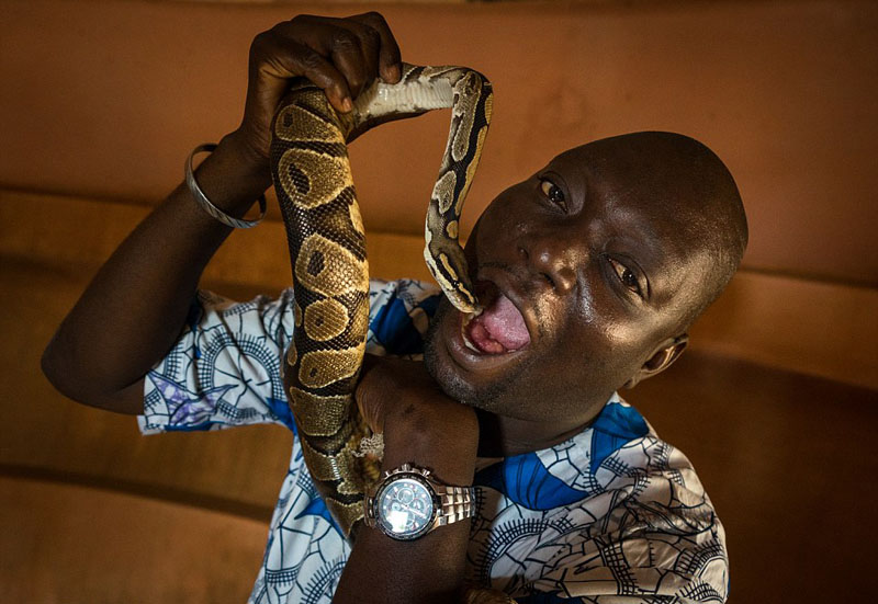 贝宁维达:蟒蛇被赋予神圣地位,人们与蟒蛇友好相处。