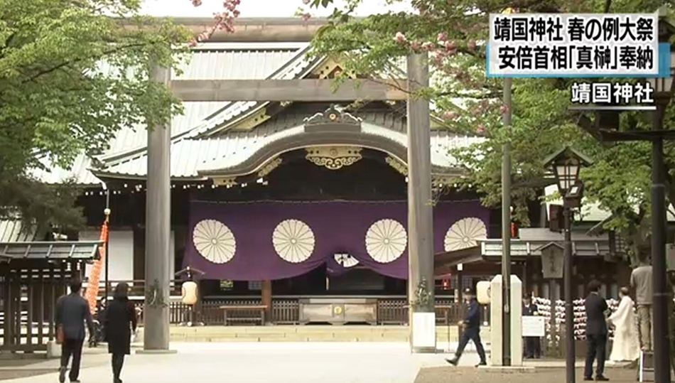 当地时间21日,靖国神社开始举行春季例行大祭。日本首相安倍晋三以“内阁总理大臣安倍晋三”的名义向靖国神社供奉了“真榊”的供品。(网站截图)