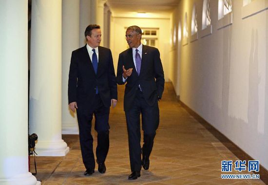 图为美国总统奥巴马(右)与英国首相卡梅伦交谈。新华社发