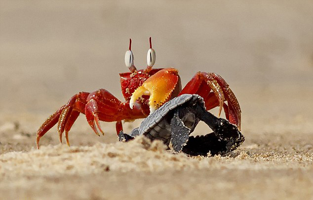 印度沙蟹欺负小海龟演绎现实版“蟹老板”(组图)