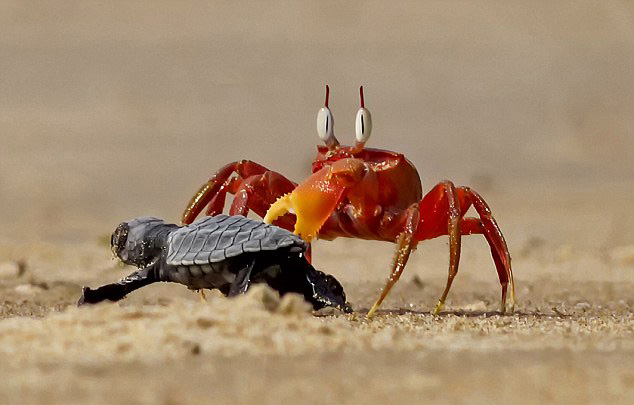 印度沙蟹欺负小海龟演绎现实版“蟹老板”(组图)