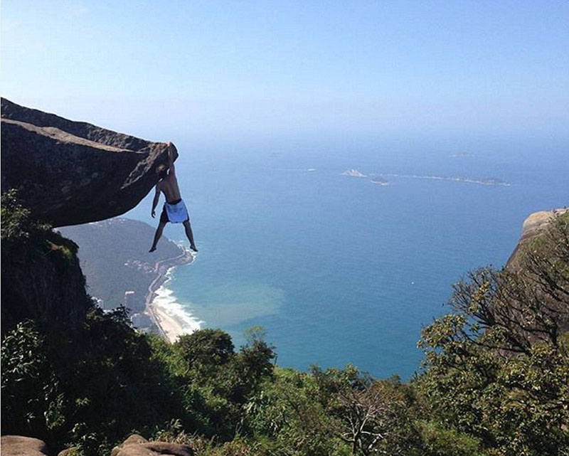 惊险!巴西800米高悬崖边游人上演花式自拍(组图)