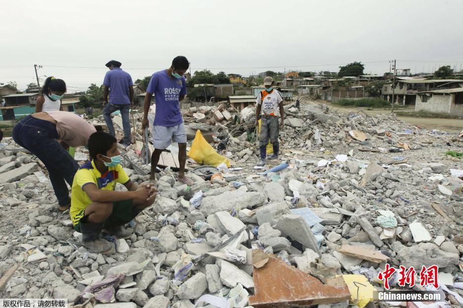 厄瓜多尔民众在震后废墟上寻找可回收物品(组图)