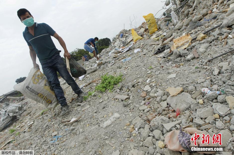 厄瓜多尔民众在震后废墟上寻找可回收物品(组图)
