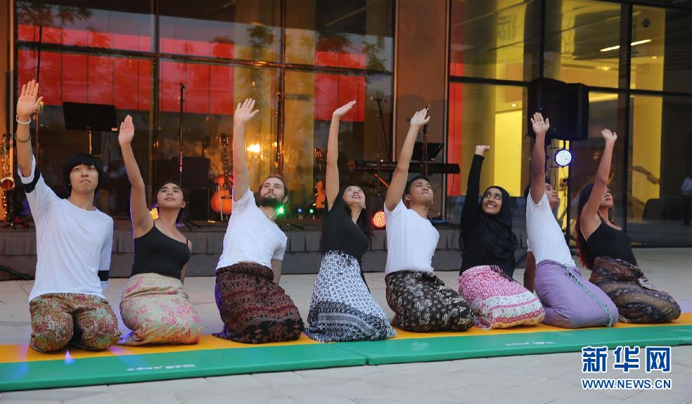 4月23日,位于阿联酋首都阿布扎比文化产业区萨阿迪亚特岛上的纽约大学阿布扎比分校举行了亚洲文化夜活动。 来自部分东南亚国家的留学生在表演民族舞蹈。 新华网记者安江摄