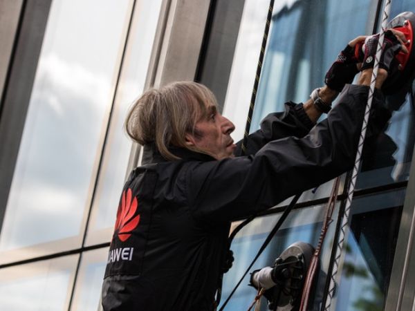 新华网北京4月25日电 应华为阿拉木图有限公司邀请,法国著名徒手攀爬者阿兰·罗贝尔23日用75分钟时间登顶阿拉木图市第一高楼伊森泰大楼。