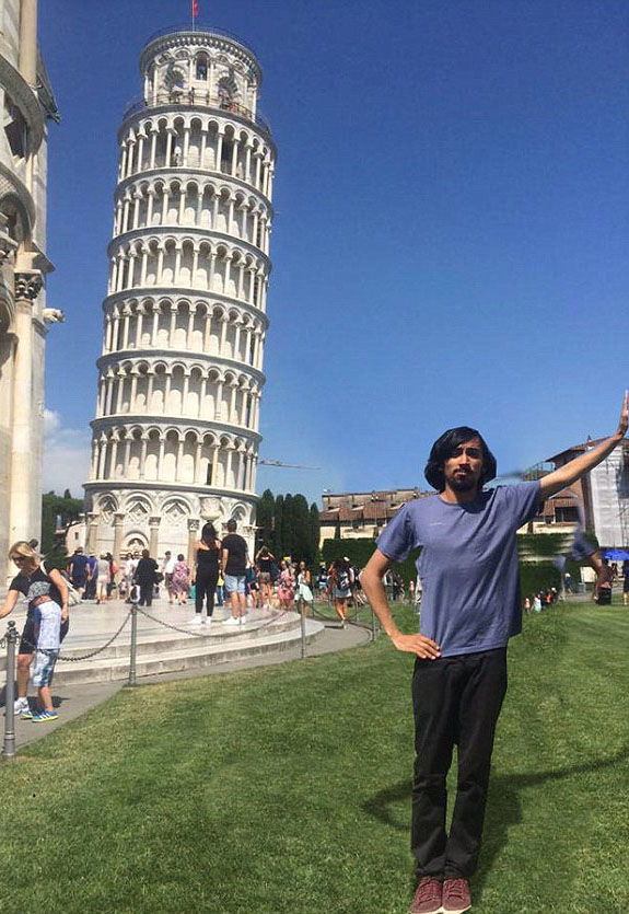 照片中,这名游客站在远处,伸出右臂。由于比萨斜塔在远处,而他站在近处,看起来就像他似乎能够触摸塔身。只是,从照片上来看,他的手距离塔身还有约“一掌”的距离。
