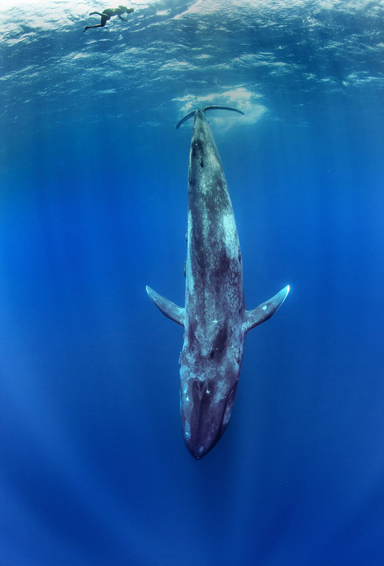 当天,佛朗哥在距离海岸线约15英里(约24千米)的水域自由潜水。可当他要潜入深海区时,看到了一只正要游向海底觅食的蓝鲸。57岁的佛朗哥激动不已,立刻拍下了自己与蓝鲸同框的画面,并欣然决定与蓝鲸一同游向海底。