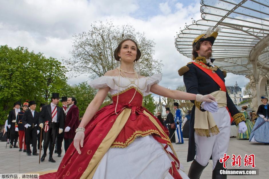 法国拿破仑三世历史节 民众着复古服饰翩翩起舞(组图)