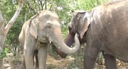 马戏团大象获救与老友重聚 “鼻牵鼻”画面温馨