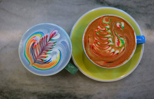 据悉,开始这种咖啡并不在菜单上,自从这些彩虹拉花咖啡的照片在网上火了一把后,咖啡厅决定将其向消费者推出。
