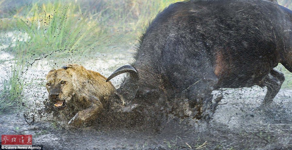 母爱无敌!水牛妈妈为救牛犊勇斗二狮(图)