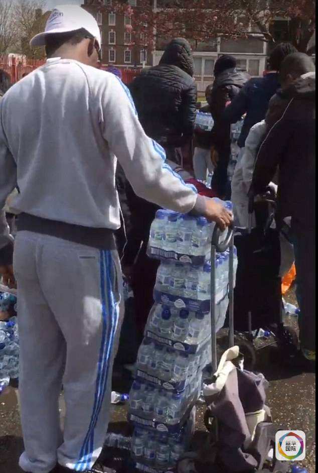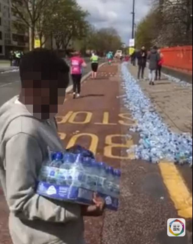 注意素质!伦敦马拉松市民推车哄抢补给水