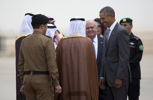 20日,美国总统奥巴马抵达沙特,参加海湾国家峰会。引人注目的是,在机场迎接他的,是利雅得地方政府的官员,而不是以往的沙特国王。与此同时,沙特国家电视台也未像此前的访问一样,播出奥巴马抵达当地的画面。