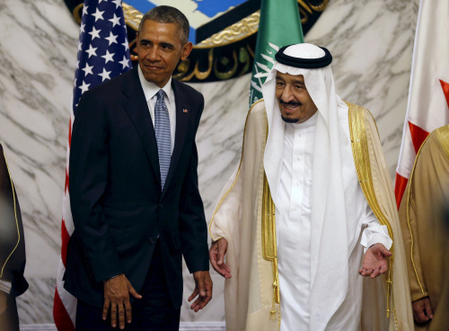 在利雅得,奥巴马与沙特国王萨勒曼举行了2个半小时的闭门会议。尽管白宫官员在会谈后强调,奥巴马与沙特国王“切实消除了隔阂”,沙特前情报机构负责人费萨尔亲王却表示,美沙关系仍需“重新校准”。