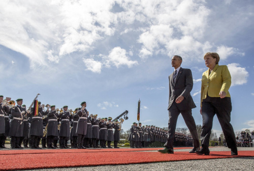 与英国相似,德国官方也给予了奥巴马热情的欢迎。在汉诺威,德国总理默克尔为奥巴马举办了欢迎仪式,两人共同检阅了仪仗队,并在海恩豪森宫举行了首脑会谈。两人还共同为汉诺威工业博览会揭幕,试用了各种新奇的工业装置。