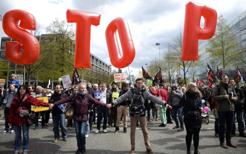 与美德政府互相“取暖”的势头相反,德国国内反对TTIP的声浪强劲。抗议者担忧,这一协议将削弱对消费者的保护,降低环境标准。从奥巴马访问德国之前就开始的示威愈演愈烈,数万人在汉诺威集会,挥舞旗帜,高举“停止TTIP”的标语牌。奥巴马的这场外交“谢幕之旅”,就在德国民众的抗议声中结束。(完)
