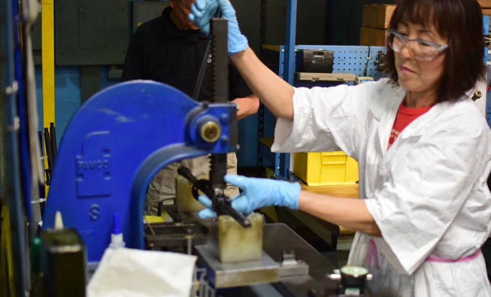 这位女工正在用矫正机调整枪管的正直度,这可对个人加工技术有很高要求,完全依靠多年积累的经验。