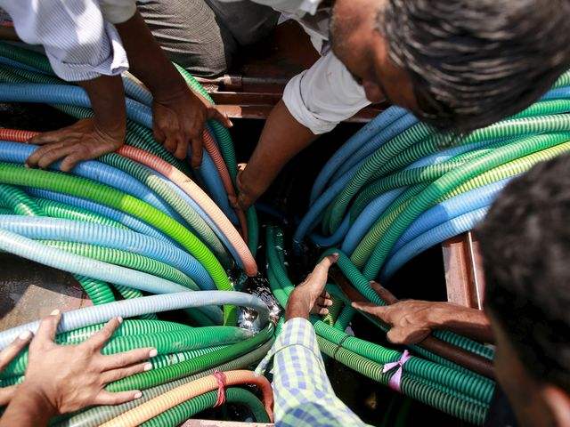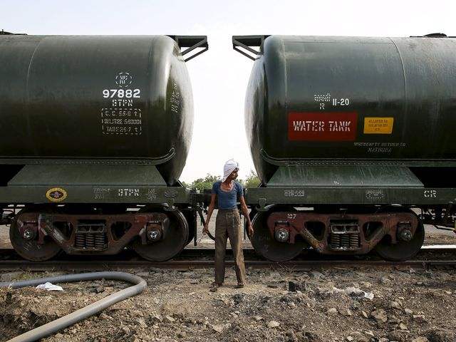 在马哈拉施特拉邦马拉特瓦达地区,送水列车每天一列50节车厢,能运水250万升,水运到当地后再由水罐车运到村庄。