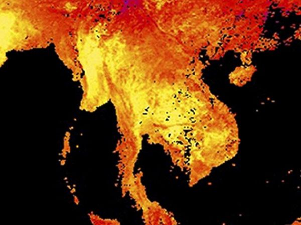 美国国家航空航天局(NASA)卫星照片:4月15日至23日东南亚区域地表温度。(图片来源:新华/美联)