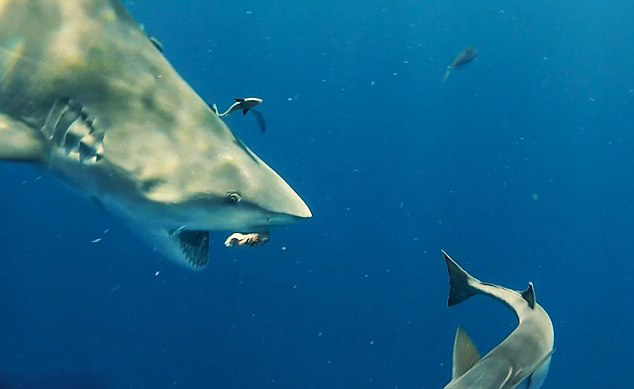 潜水员美国深海拍摄巨型鲨鱼场面惊心(组图)