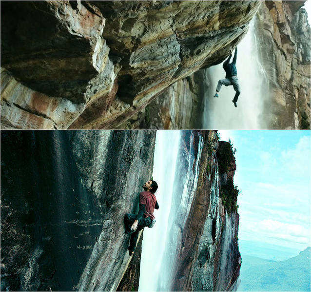 ↑天使瀑布近乎笔直的绝壁吸引了世界各地的很多极限运动爱好者。图为电影剧照。