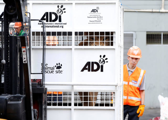 总部位于美国洛杉矶的国际动物保护者协会发起这次解救和空运狮子的行动。组织者说,这次空运可能是迄今规模最大的一次动物运输。