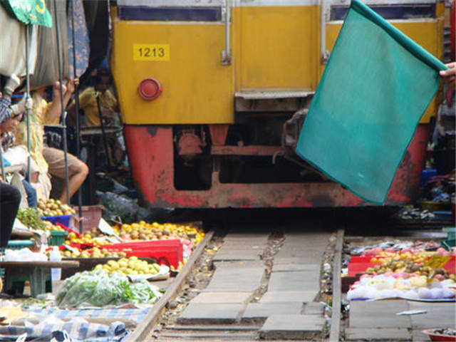 泰国最危险菜市场 火车每天6次蔬果上开过