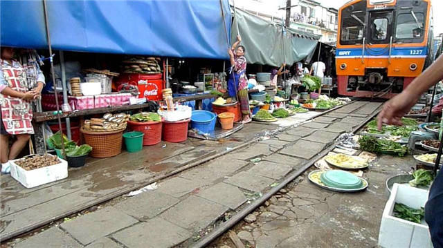 原标题:泰国最危险菜市场 火车每天6次蔬果上开过