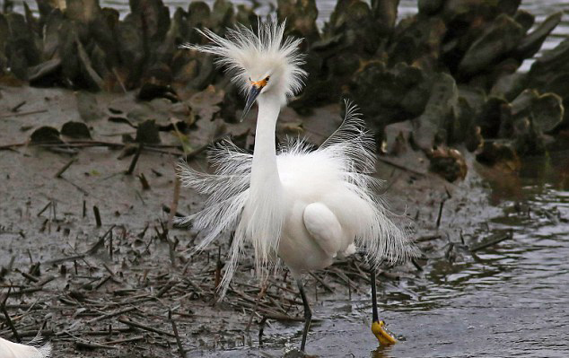 摄影师抓拍“炸毛”雪鹭风中凌乱(组图)