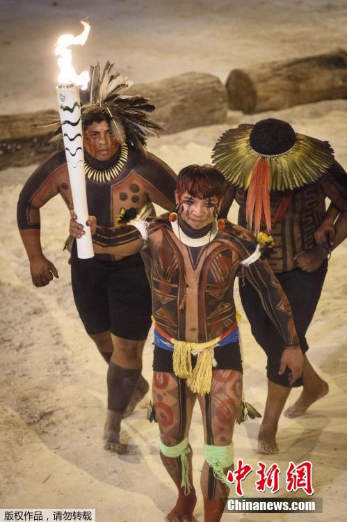 里约奥运会火炬传递 巴西原住民手举火炬举行特色仪式(组图)