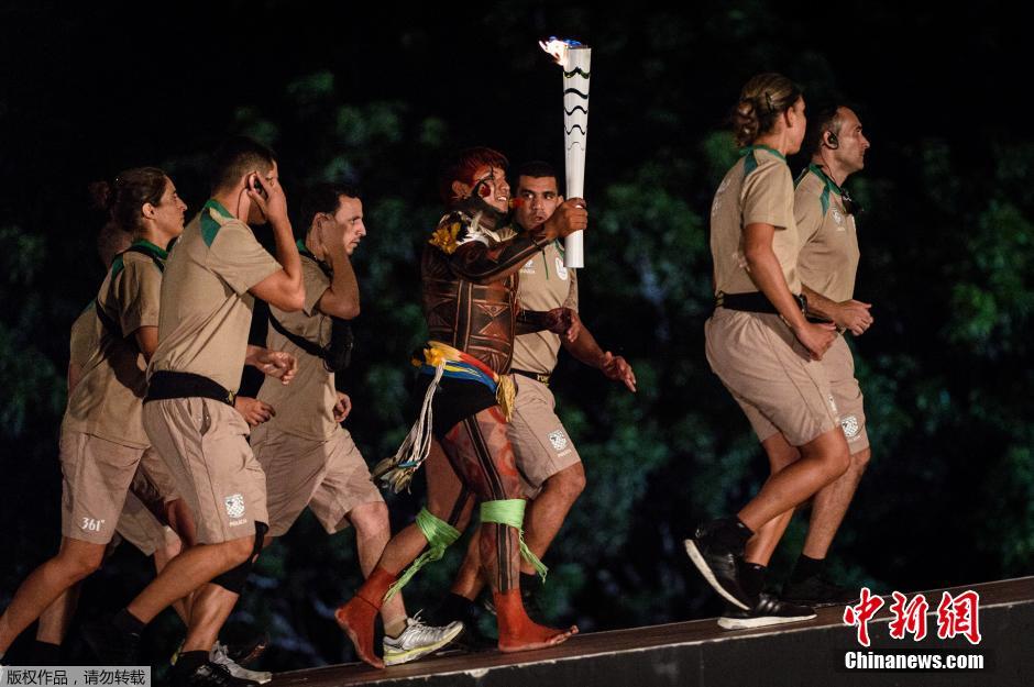 里约奥运会火炬传递 巴西原住民手举火炬举行特色仪式(组图)