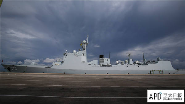 5月3日,停靠在文莱麻拉海军港口的中国“兰州”号导弹驱逐舰。亚太日报记者黄海敏摄