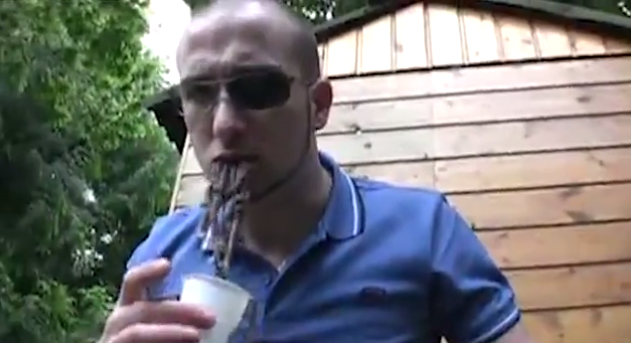 这段视频是该男子的朋友在法国拍摄的,这位“食客”男子在其朋友的鼓动下开始吞食蚯蚓。视频中,满满一杯蚯蚓缠绕蠕动,该男子迅速低头将它们吞到嘴里。