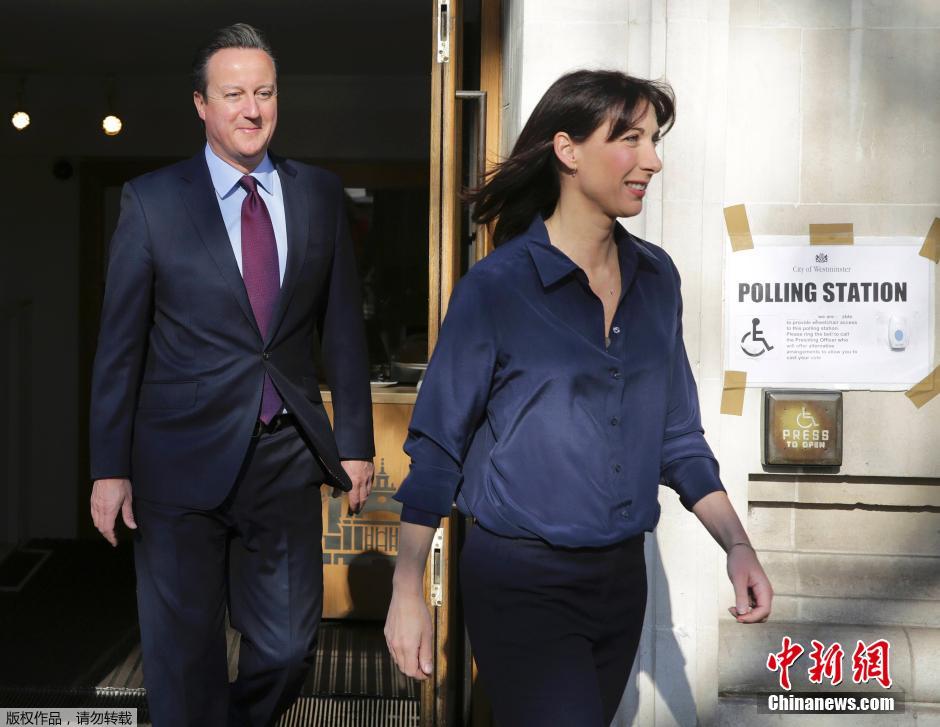 当地时间2016年5月5日,英国伦敦,伦敦市长选举举行,首相大卫·卡梅伦和夫人萨曼莎·卡梅伦投票。