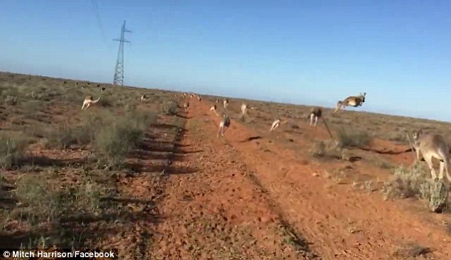 爆笑!澳受惊袋鼠群慌乱翻越栅栏(图)