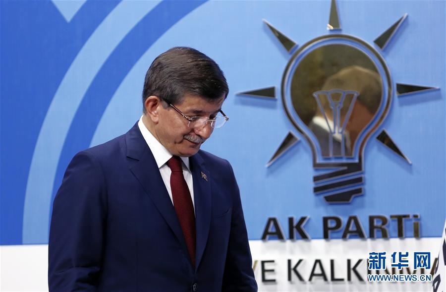 5月5日,在土耳其首都安卡拉,土耳其总理、正义与发展党(正发党)主席达武特奥卢出席新闻发布会。土耳其总理、正义与发展党(正发党)主席达武特奥卢5日宣布,他决定将辞去正发党主席和土耳其总理职务。 新华社/美联
