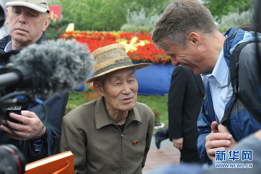 5月6日,在朝鲜首都平壤,一名朝鲜人(中)接受美国媒体采访。当日,朝鲜劳动党第七次全国代表大会在首都平壤“4·25文化会馆”举行。这是朝鲜劳动党时隔36年再次召开全国代表大会。新华社记者郭一娜 摄