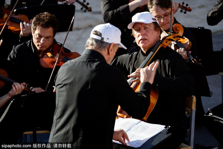 据《纽约时报》报道,此次交响音乐会由俄罗斯国家电视台转播。除此之外,还有100名记者组成的团体由莫斯科飞临帕尔米拉,亲历了这场演出。(图片来源:Sipaphoto供稿)