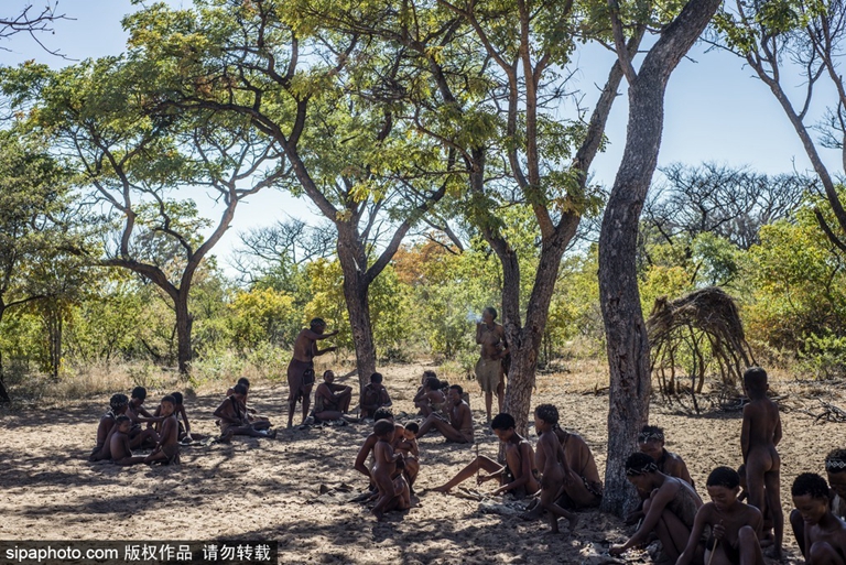 桑人以宗族为主要社会结构形式,每族由数个家庭组成,共有25~60人左右。族内家庭则包括夫妻及其哺养的子女,有时家庭因多婚制婚媾而使其成员数目增加。所有宗族成员彼此间常有亲戚关系。各宗族之间,透过交易、访问尤其是婚姻关系,进行著可观的相互交往和交流;同时,不论是真的还是假的亲戚关系,都广泛分布,这就便利了宗族间人们经常流动,因此任何一个宗族的人口构成状况,都会随时大不相同。每一宗族各自为治,没有族长;在多数宗族内部,遇到特殊情况发生,由猎手或年长者运用其影响而不是施加其权威。(图片来源:Sipaphoto供稿)