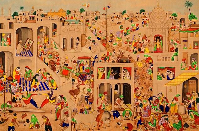 这幅长86厘米宽58厘米的画作出自19世纪的印度画家巴巴·比杉·辛格(Baba Bishan Singh)之手。根据该画背景中的曼哈迪尔寺可以推测,这幅画展现的是印度北部阿姆利则地区的风俗人情和建筑风貌,具有很高的历史研究价值和收藏价值。