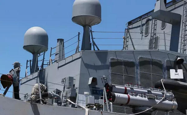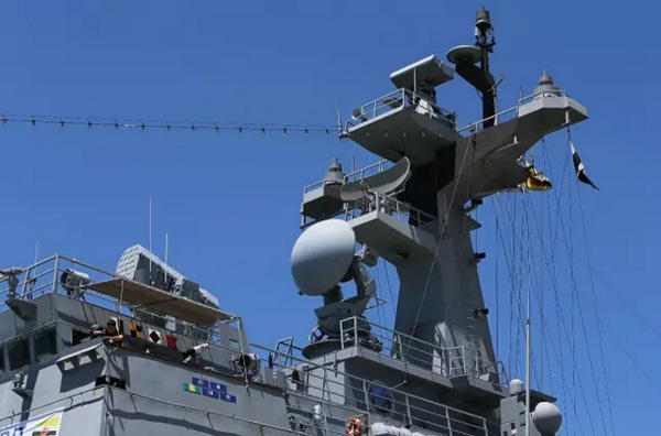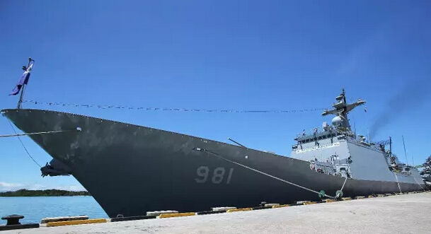 5月4日,靠泊在文莱麻拉港口的韩国海军981“崔莹”号。亚太日报记者黄海敏摄