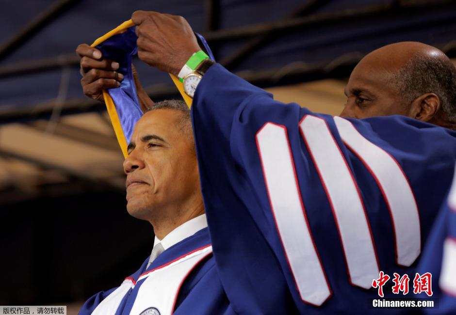 当地时间2016年5月7日,美国华盛顿,奥巴马出席霍华德大学毕业典礼,获得理学博士荣誉学位。